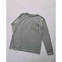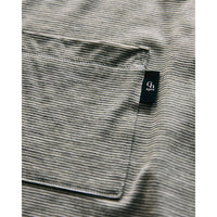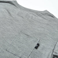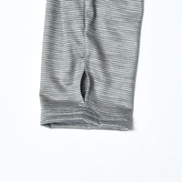 上品な細ボーダー柄を、程よくスポーティーなパッチポケット付きのボートネックで表現。