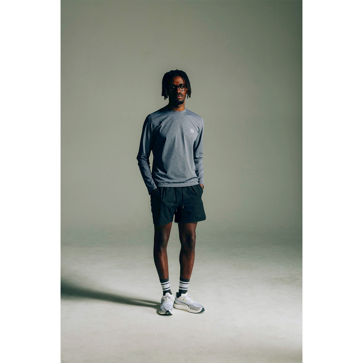 伸縮性のある上質なパウダータッチ生地を、ベーシックフィットのロングスリーブTシャツに仕上げました。